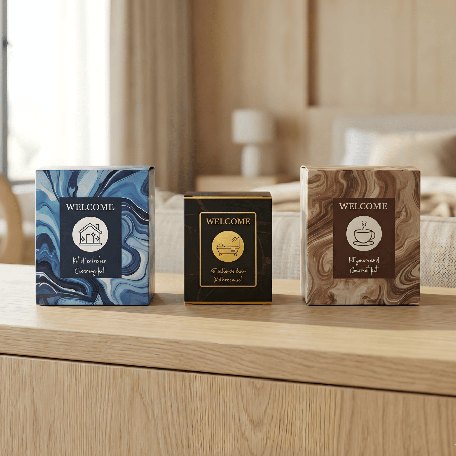 Cette offre a été pensée pour les hôtes exigeants qui souhaitent toucher, sentir et voir nos produits avant de s'engager. Nous savons que la photo ne suffit pas toujours à rendre compte de la texture d'un carton, de la subtilité d'un parfum au Thé Blanc ou de l'élégance d'une dorure à chaud.